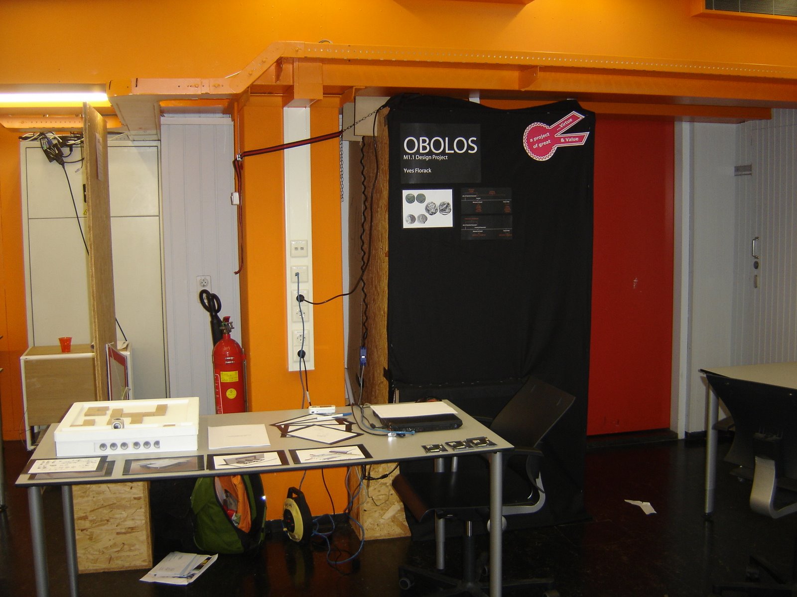 Below are a few pictures and videos of my exhibition stand. I simultaneously presented my progress so far of Modules and my Project, and also offered an experience for the exhibition audience (being able to make possible choices for their eventual personal 'Obolos'-product) combined with a usertest.